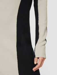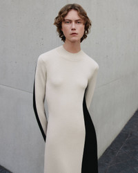 The Bi-Colour Knit Dress is a long, slim fit dress, crafted from a luxurious blend of merino wool and silk. This contrasting coloured dress is knitted together in Milano and jersey stitch, which offers a comfortable, close fitting nature to the style. - Designed for a slim fit - Full-length - Ribbed mock neckline - Product code: jf0090251285 - Quail/Black SIZE ADVICE - Length 132cm - 137cm - Model wears size M CARE & MATERIALS Discover the Care Guide, a guide to help you to care for your garments. - 75% Merino wool 25% Silk - Machine wash hand wash cycle, very gentle spin - Do not bleach - Do not tumble dry - Iron low temperature setting - Dry clean - Use a wool shampoo - Put in a laundry bag - Wash inside out with similar colours - Dry flat - Iron inside out The Responsible Wool Standard is guaranteeing animal welfare, land management and social requirements on the entire supply chain, from wool farmer to Joseph. This standard is backed up by independent certification. Certified by Ecocert Greenlife, certification N° 272512 JOSEPH LIMITED.
