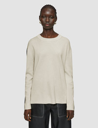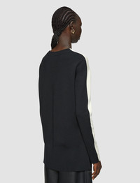 The Bi-Colour Knit Jumper is a relaxed fit jumper, crafted from a luxurious blend of merino wool and silk. This elegant style has a smooth and compact hand feel. It features a step hemline for an easy-wearing silhouette, offering the option to tuck-in. - Designed for a relaxed fit - Dropped shoulders - Ribbed neckline - Step hemline - Product code: jf0090231285 - Quail/Black SIZE ADVICE - Model wears size S CARE & MATERIALS Discover the Care Guide, a guide to help you to care for your garments. - 75% Merino wool 25% Silk - Machine wash hand wash cycle, very gentle spin - Do not bleach - Do not tumble dry - Iron low temperature setting - Dry clean - Use a wool shampoo - Put in a laundry bag - Wash inside out with similar colours - Dry flat - Iron inside out The Responsible Wool Standard is guaranteeing animal welfare, land management and social requirements on the entire supply chain, from wool farmer to Joseph. This standard is backed up by independent certification. Certified by Ecocert Greenlife, certification N° 272512 JOSEPH LIMITED.