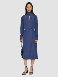 The Bolero Silk Crepe de Chine Dress is a relaxed fit, belted dress, crafted from a lightweight silk crepe with has a smooth, crisp hand feel. Its neckline features versatile ties which can be styled to the front or back. Finished with gathered detailing at the shoulders, back and cuffs for an elegant look. - Designed for a relaxed fit - Mid-length - Neckline ties - Gathered detailing - Removable belt - Product code: jf0089681403 - Harbour Blue SIZE ADVICE - Model wears size FR 36/UK 8/EU 34/US 4/DE 34/IT 40/JP 7 CARE & MATERIALS Discover the Care Guide, a guide to help you to care for your garments. - 100% Silk - Machine wash, wool/ silk program wash, very gentle spin - Do not bleach - Do not tumble dry - Iron low temperature setting - Dry clean