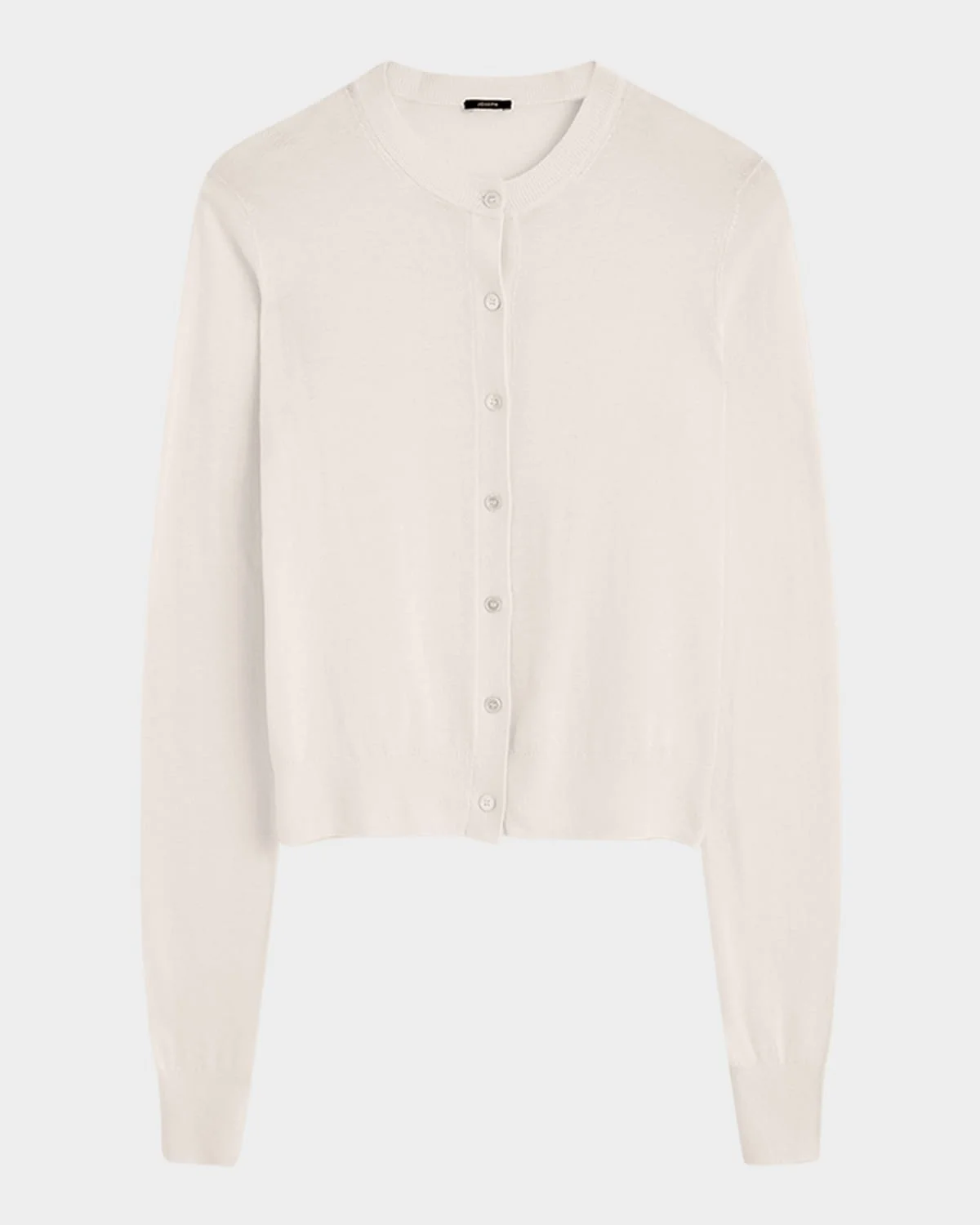 Joseph cardigan in a cashmere blend Crew neckline; button front Long sleeves Relaxed fit Cotton/cashmere/silk Machine wash cold Imported