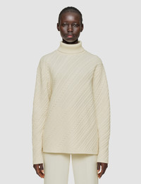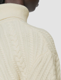 The Cable Knit Wool Jumper is a relaxed fit style, crafted from merino wool. An effortless addition to your wardrobe, this luxurious jumper delivers on warmth, an ultra-soft hand feel and a timeless cable knit pattern. Model wears size M Details - 100% merino wool - Designed for a relaxed fit - Ribbed high neck - Dropped shoulders - Product code: jf0093320045 Care & Materials - 100% Merino wool - Machine wash, cycle hand wash, wool/silk program wash, very gentle spin - Do not bleach - Do not tumble dry - Iron low temperature setting - Dry clean - Use a wool shampoo - Put in a laundry bag - Wash inside out with similar colours - Dry flat - Iron inside out