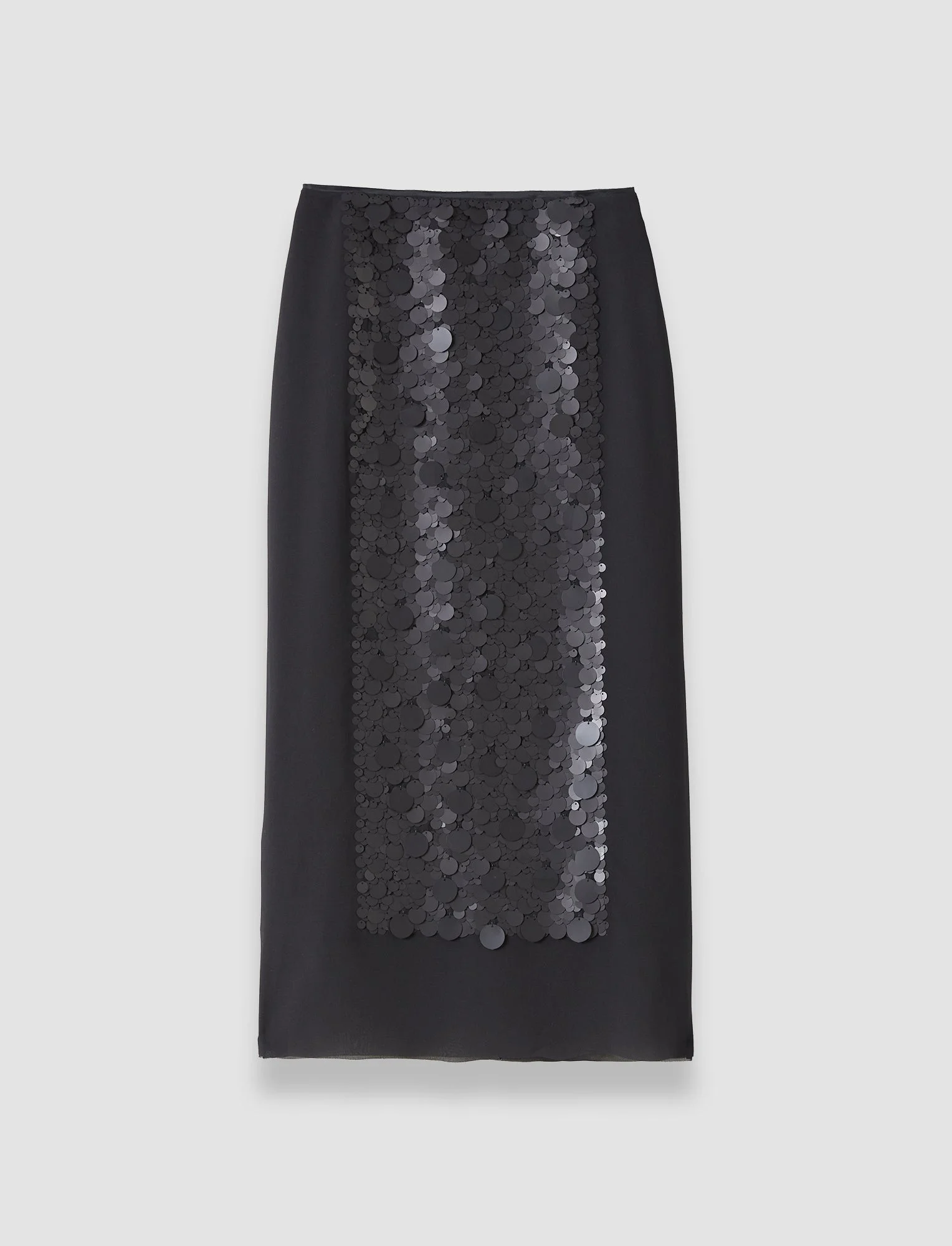 The Cambo Chiffon Sequin Skirt is a striking A-line skirt. A sheer chiffon overlay, embellished with matte sequins, layers comfortably over a tonal slip skirt. Together they create a dimensional silhouette that moves with ease and catches the light. Model wears size FR 36/UK 8/EU 34/US 4/DE 34/IT 40/JP 7 Details - Gradual A-line - Invisible side zip - Internal grosgrain waistband - Matte sequin panelling - Sheer chiffon overlay attached at waistband - Product code: jf0095140010 Care & Materials - Chiffon overlay 100% Polyester - Slip skirt 81% Acetate 19% Polyester - Do not wash - Do not bleach - Do not tumble dry - Iron low temperature setting - Dry clean - Put in a laundry bag