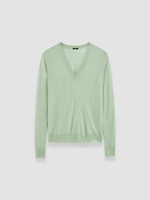The Cashair V Neck Jumper is a relaxed fit, lightweight knit jumper, crafted from 100% cashmere. This JOSEPH signature knit is soft, delicate and semi sheer, finished with a ribbed neckline, hem and cuffs. - 100% cashmere - Designed for a relaxed fit - Semi sheer - Lightweight knit - Product code: jf0089121336 - Matcha Green SIZE ADVICE - Model wears size S CARE & MATERIALS Discover the Care Guide, a guide to help you to care for your garments. - 100% Cashmere - Machine wash, hand wash cycle, very gentle spin - Do not bleach - Do not tumble dry - Iron low temperature setting - Dry clean - Use a wool shampoo - Put in a laundry bag - Wash inside out with similar colours - Dry flat - Iron inside out