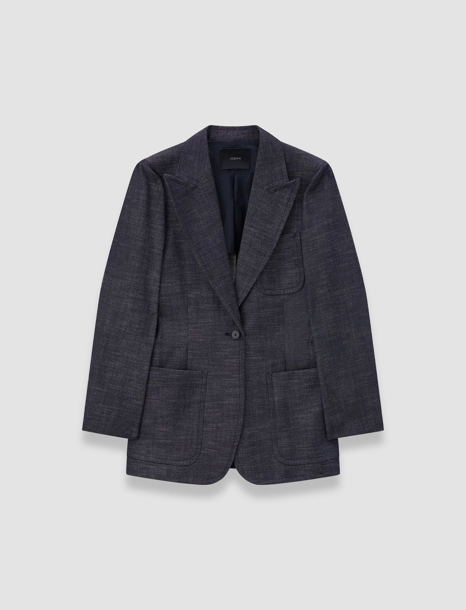 The Cassini Sartorial Denim Jacket is a slim fit jacket. Crafted from blend of virgin wool and cotton which achieves a smart, contemporary denim look. This jacket is half-lined for lightness and has a a smooth finish. Model wears size FR 36/UK 8/EU 34/US 4/DE 34/IT 40/JP 7 Details - Designed for a slim fit - Single-breasted - Patch pockets - Half-lined - Product code: jf0093541410 Care & Materials - 65% Virgin Wool 35% Cotton - Do not wash - Do not bleach - Do not tumble dry - Iron low temperature setting - Dry clean