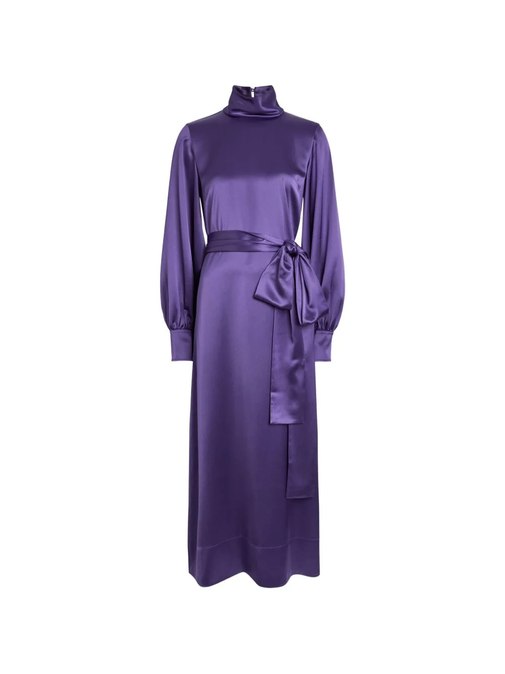 Cels belted satin midi dress Highlights - Violet - Waist tie - High neck - Long sleeves - Midi length Imported Composition Acetate 81%, Polyester 19% Washing instructions Dry Clean Only