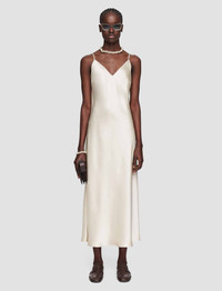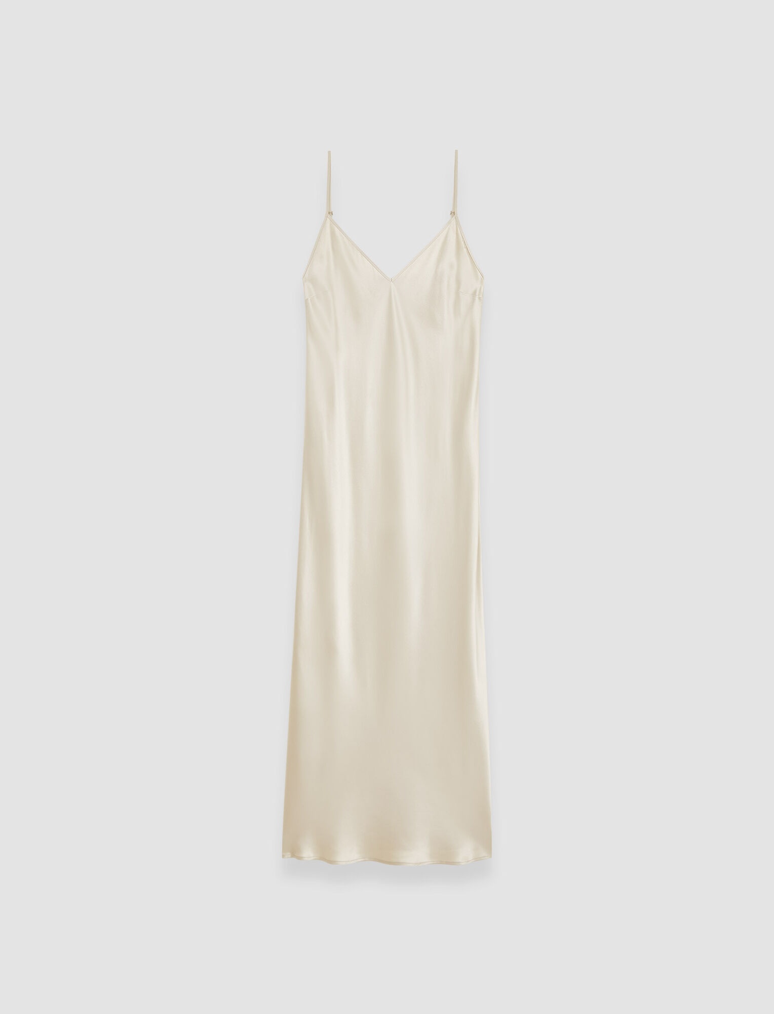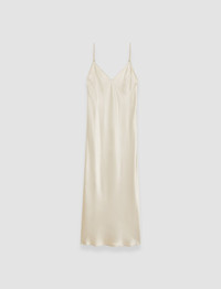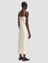 The Silk Satin Clea Dress is a bias cut slip dress, fitting slightly slimmer across the top half the body and falls loosely from the hips. Crafted from a smooth, lustrous silk which is rich in colour, this dress offers a clean, fluid look. - 100% silk - Bias cut - Mid-length - V neck - Adjustable straps - Product code: jf0087161274 SIZE ADVICE - Model wears French size 36 CARE & MATERIALS Discover the Care Guide, a guide to help you to care for your garments. - 100% Silk - Do not wash - Do not bleach - Do not tumble dry - Iron low temperature setting - Dry clean very light with restriction