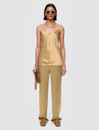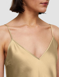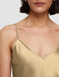 The Clea Camisole Silk Satin is a bias cut top, crafted from a luxurious, lustrous silk which is ultra smooth and rich in colour. This timeless piece offers a clean look; ideal for wearing on its own or as a layering piece. - 100% silk - Bias cut - V neck - Adjustable straps - Product code: jf0090871263 - Desert Sand Beige SIZE ADVICE - Model wears size FR 36/UK 8/EU 34/US 4/DE 34/IT 40/JP 7 CARE & MATERIALS Discover the Care Guide, a guide to help you to care for your garments. - 100% Silk - Do not wash - Do not bleach - Do not tumble dry - Iron low temperature setting - Dry clean
