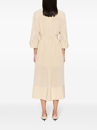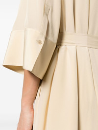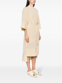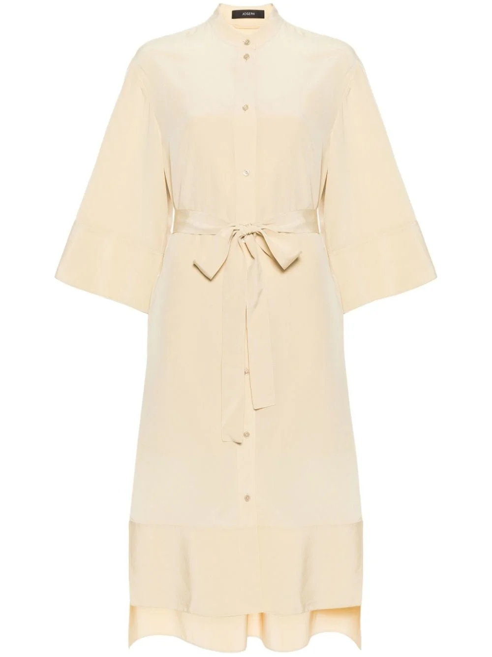 collarless silk dress Highlights - Light yellow - Silk - Collarless - Front button fastening - Belted waist - Front tie fastening - Short sleeves - High-low hem - Mid-length Imported Composition Lining: Silk 100% Outer: Silk 100% SIZE & FIT Model measurements Height 5 ft 11 in(1.8 m) Bust/Chest 33.07 in(84 cm) Hips 37.4 in(95 cm) Waist 25.19 in(64 cm) FittingInformation Designed to be unstructured, offering a loose fit throughout The detachable slip sits just away from the body, offering a close yet comfortable fit Made from a midweight non-stretch fabric This piece fits true to size – take your usual size Washing instructions Dry Clean Only
