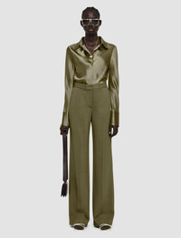The Comfort Cady Morissey Trousers are a mid-rise, subtle flare trouser, crafted from a viscose cady material which is compact and fluid. This full-length style features central pressed creases to elongate the silhouette. - Designed for a regular fit - Mid-rise - Full-length style - Gradual flare - Side pockets - Product code: jp0015531325 SIZE ADVICE - Model wears French size 36 - Regular outer leg length 113cm - 116cm - Shorter outer leg length 102cm - 105cm Discover the Trouser Guide and find your perfect fit CARE & MATERIALS - 77% Viscose 20% Acetate 3% Elastane - Do not wash - Do not bleach - Do not tumble dry - Iron low temperature setting with a piece of fabric between - Dry clean very light with restriction
