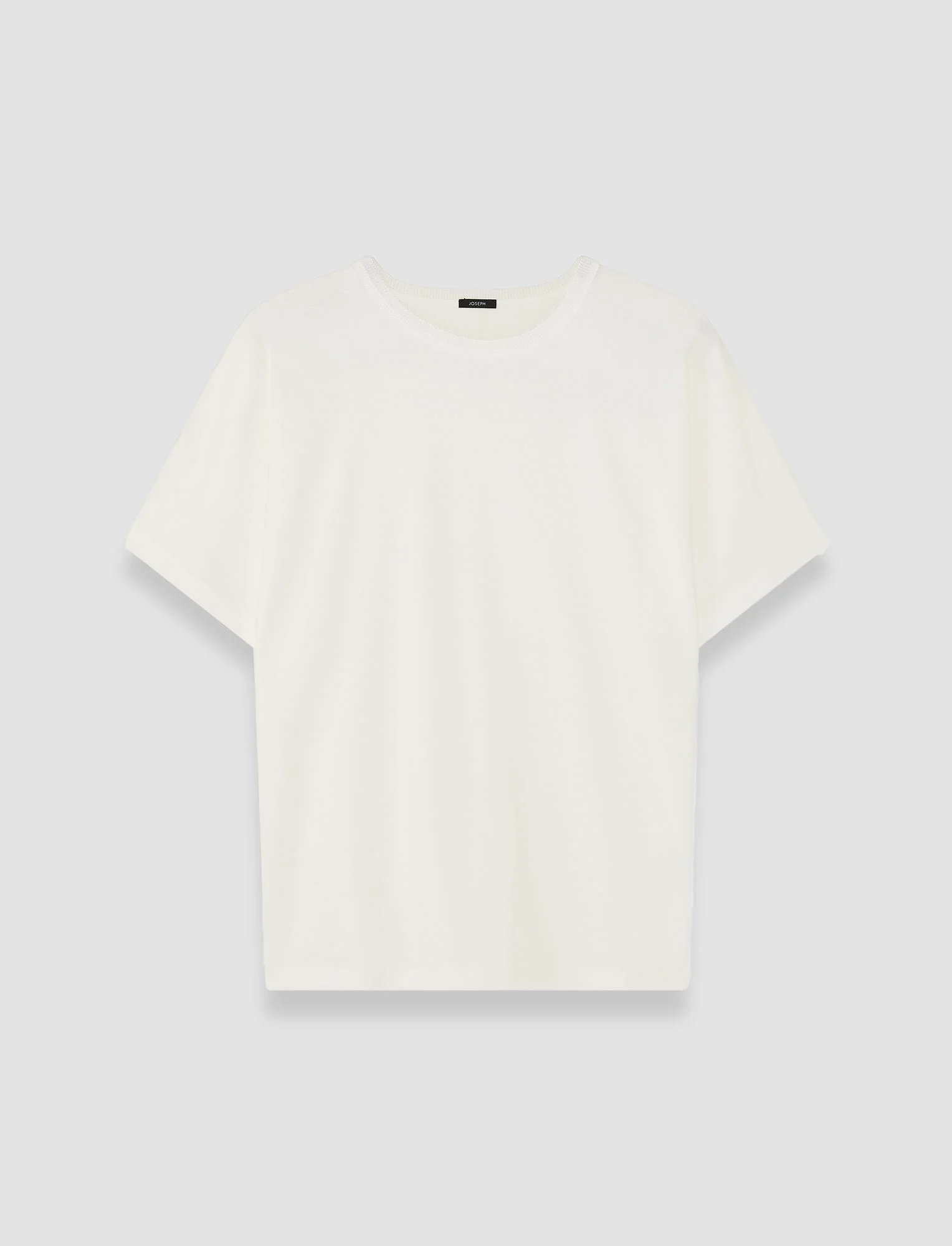 The Comfort Cotton T-Shirt is a regular fit style, crafted from 100% Cotton. This minimal, everyday style has a soft jersey hand feel. It features a tonal ribbed detailing at the neckline and a single seam sleeve for a clean look. - Designed for a regular fit - Soft, mid-weight jersey - Single seam sleeves - Product code: jf0090480045 - Ivory SIZE ADVICE - Model wears size M CARE & MATERIALS - 100% Cotton - Machine wash, wool/silk program wash, very gentle spin - Do not bleach - Do not tumble dry - Iron low temperature setting - Dry clean normal - Use a wool shampoo - Put in a laundry bag - Wash inside out with similar colours - Dry flat - Iron inside out