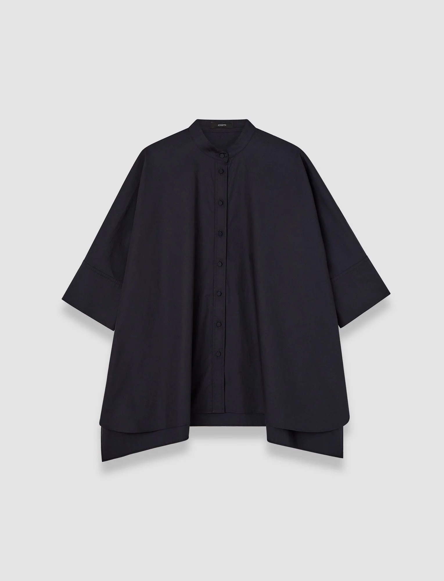The Congo Poplin Cotton Shirt is an oversized style, crafted from sturdy, breathable cotton. Featuring dropped shoulders and a step hemline, this shirt's exaggerated proportions delivers a sense of effortless cool. - We are recommending a size down - 100% cotton - Designed for a oversized fit - Dropped shoulders - Step hemline - Wide 3/4 length sleeves - Product code: jf0090780370 - Navy SIZE ADVICE - We are recommending a size down - Model wears size FR 40/UK 12/EU 38/US 8/DE 38/IT 44/JP 11 CARE & MATERIALS - 100% Cotton - Machine wash, delicate program wash, very gentle spin - Do not bleach - Do not tumble dry - Iron low temperature setting - Dry clean - Use a mild detergent - Wash inside out with similar colours - Hang to dry - Iron on reverse The GOTS certification of this product ensures that the cotton used is organic, cultivated without GMO, pesticides, insecticides and hazardous chemicals. Practices are socially and environmentally responsible all along the production chain. Organic Certified by Ecocert Greenlife 272512 JOSEPH LIMITED.