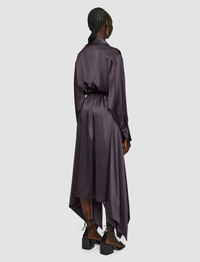 The Cyprien Silk Satin Dress is a relaxed fit shirt dress. Crafted from a luxurious, lustrous silk which is ultra smooth and rich in colour. This striking piece features a fluid handkerchief style skirt. Its hidden placket and classic shirt cuffs offers a clean, elegant look. - 100% silk - Designed for a relaxed fit - Shirt dress - Hidden placket - Handkerchief skirt - Removable belt - Product code: jf0088830572 - Aurora Purple SIZE ADVICE - Model wears size FR 36/UK 8/EU 34/US 4/DE 34/IT 40/JP 7 CARE & MATERIALS Discover the Care Guide, a guide to help you to care for your garments. - 100% Silk - Do not wash - Do not bleach - Do not tumble dry - Iron low temperature setting - Dry clean