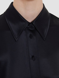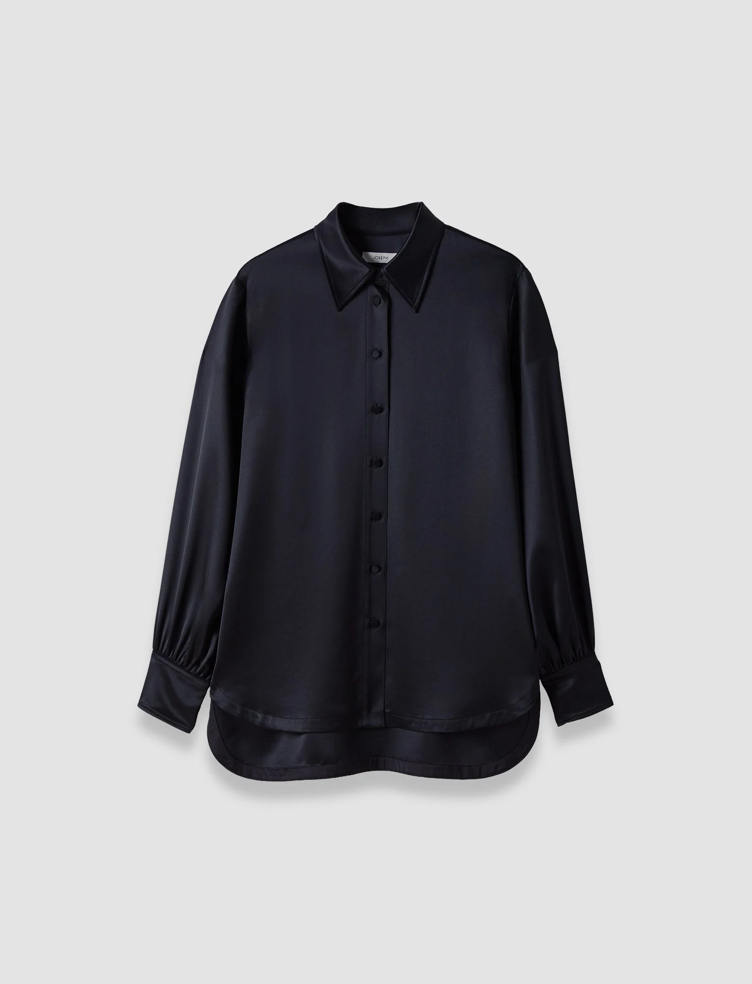 The Dieu Double Satin Blouse is a relaxed fit blouse, crafted from a responsibly sourced acetate blend known for its lustrous, silky hand feel. The blouson sleeves, soft back pleats, and a curved hemline introduce subtle volume and proportion, bringing modern elegance to this classic style. Model wears size FR 38/UK 10/EU 36/US 6/DE 36/IT 42/JP 9 Details - Designed for a relaxed fit - Blouson sleeves - Double back pleat - Curved hemline - Product code: jf0095090010 Care & Materials - 81% Acetate 19% Polyester - Do not wash - Do not bleach - Do not tumble dry - Iron low temperature setting - Dry clean