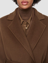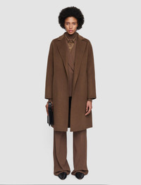 The Double Face Cashmere Cenda Long Coat is a relaxed fit wrap coat, crafted from a blend of wool and cashmere. This coat is minimal in style, it's lightweight with a luxuriously soft hand feel. - We are recommending a size smaller - Designed for a relaxed fit - Mid-length - Wrap style - Removable belt - Side pockets - Product code: jf0087541210 SIZE ADVICE - Model wears size FR 36/UK 8/EU 34/US 4/DE 34/IT 40/JP 7 CARE & MATERIALS Discover the Care Guide, a guide to help you to care for your garments. - 80% Wool 20% Cashmere - Do not wash - Do not bleach - Do not tumble dry - Iron low temperature setting - Dry clean very light with restriction The Responsible Wool Standard is guaranteeing animal welfare, land management and social requirements on the entire supply chain, from wool farmer to Joseph. This standard is backed up by independent certification. Certified by Ecocert Greenlife, certification N° 272512 JOSEPH LIMITED.