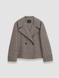 The Double Face Cashmere Dogtooth Rollet Jacket is a regular fit jacket, crafted from a blend of soft wool and cashmere. This modern style features a classic dogtooth pattern. It features a wide collar and shirt-like, buttoned cuffs. - Designed for a regular fit - Double-breasted - Wide collar and lapels - Buttoned cuffs - Side pockets - Product code: jf0087721912 SIZE ADVICE - Model wears size FR 36/UK 8/EU 34/US 4/DE 34/IT 40/JP 7 CARE & MATERIALS Discover the Care Guide, a guide to help you to care for your garments. - 100% Wool - Do not wash - Do not bleach - Do not tumble dry - Iron low temperature setting - Dry clean very light with restriction