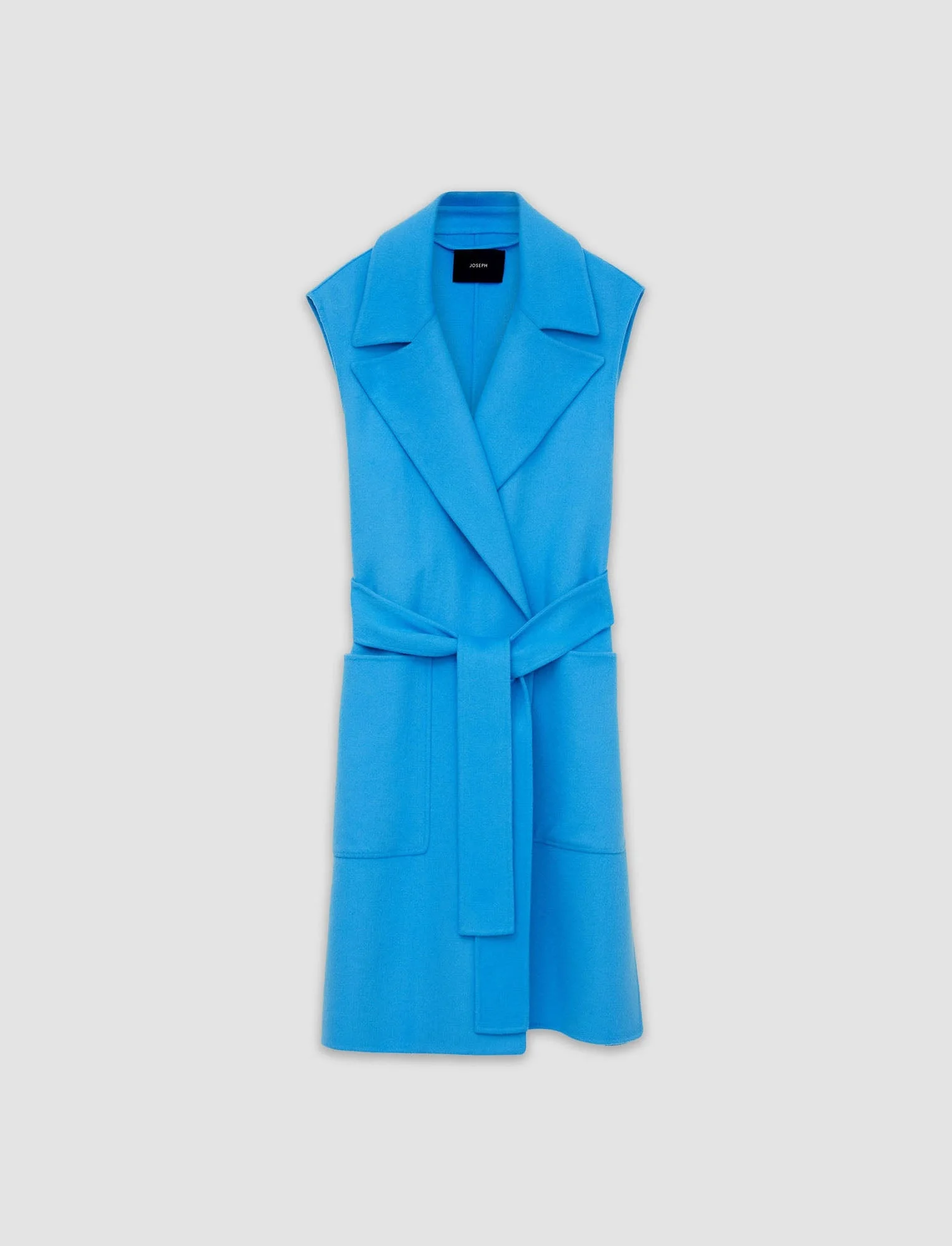 The Double Face Cashmere Garance Jacket is a sleeveless, wrap jacket crafted from a blend of wool and cashmere. This jacket is soft and light and ideal for layering. It feature spacious front pockets and a wide collar and lapels. Model wears size S Details - Consider a size smaller - Designed for a relaxed fit - Wrap style - Mid-length - Removable belt - Front pockets - Product code: jf0081221435 Care & Materials - 80% Wool 20% Cashmere - Do not wash - Do not bleach - Do not tumble dry - Iron low temperature setting - Dry clean very light with restriction