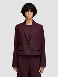 The Elia Flannel Wool Jacket is a boxy fit, cropped jacket, crafted from virgin wool. This tailored jacket features a back pleat and shoulder padding creating a modern, clean-cut silhouette. Offering structure and comfort, it has a woollen texture and a low button closure. Model wears size FR 36/UK 8/EU 34/US 4/DE 34/IT 40/JP 7 Details - Designed for a boxy fit - Single-breasted - Welt flap pockets - Shoulder padding - Back pleat with tab - Inside pocket - Lined - Product code: jf0094651602 Care & Materials - 98% Virgin Wool 1% Elastane 1% Polyamide - Do not wash - Do not bleach - Do not tumble dry - Iron low temperature setting - Dry clean