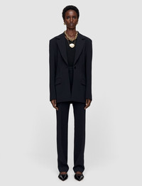 The Fallon Comfort Cady Jacket is a sculpted blazer cut from a fluid, stretch-infused viscose blend for ease and elegance. Precision Y-darts at the waist create a shaped silhouette, offering a sharp, tailored fit. Model wears size FR 36/UK 8/EU 34/US 4/DE 34/IT 40/JP 7 Details - Designed for a slim fit - Sculpted style - Single-breasted - Y-darts - Flap pockets - Lined - Product code: jf0095600010 Care & Materials - 76% Viscose 20% Acetate 4% Elastane - Do not wash - Do not bleach - Do not tumble dry - Iron low temperature setting - Dry clean
