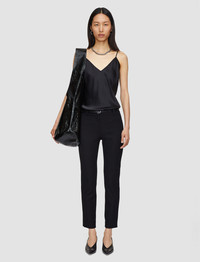 Part of the permanent Foundations Collection, the Gabardine Stretch New Eliston Trousers are a mid-rise, slim fit trouser, crafted from JOSEPH's signature gabardine stretch fabric which has remarkable stretch recovery. Offering shape and comfort, these essential trousers have a smooth, heavy weight cotton hand feel. - Designed for a slim fit - Mid-rise - Ankle length - Jet side pockets - Minimal style - Product code: jp0000400010 SIZE ADVICE - Model wears French size 36 Discover the Trouser Guide and find your perfect fit CARE & MATERIALS - 53% Viscose, 42% Cotton, 5% Elastane - Do not wash - Do not bleach - Do not tumble dry - Iron low temperature setting - Dry clean normal