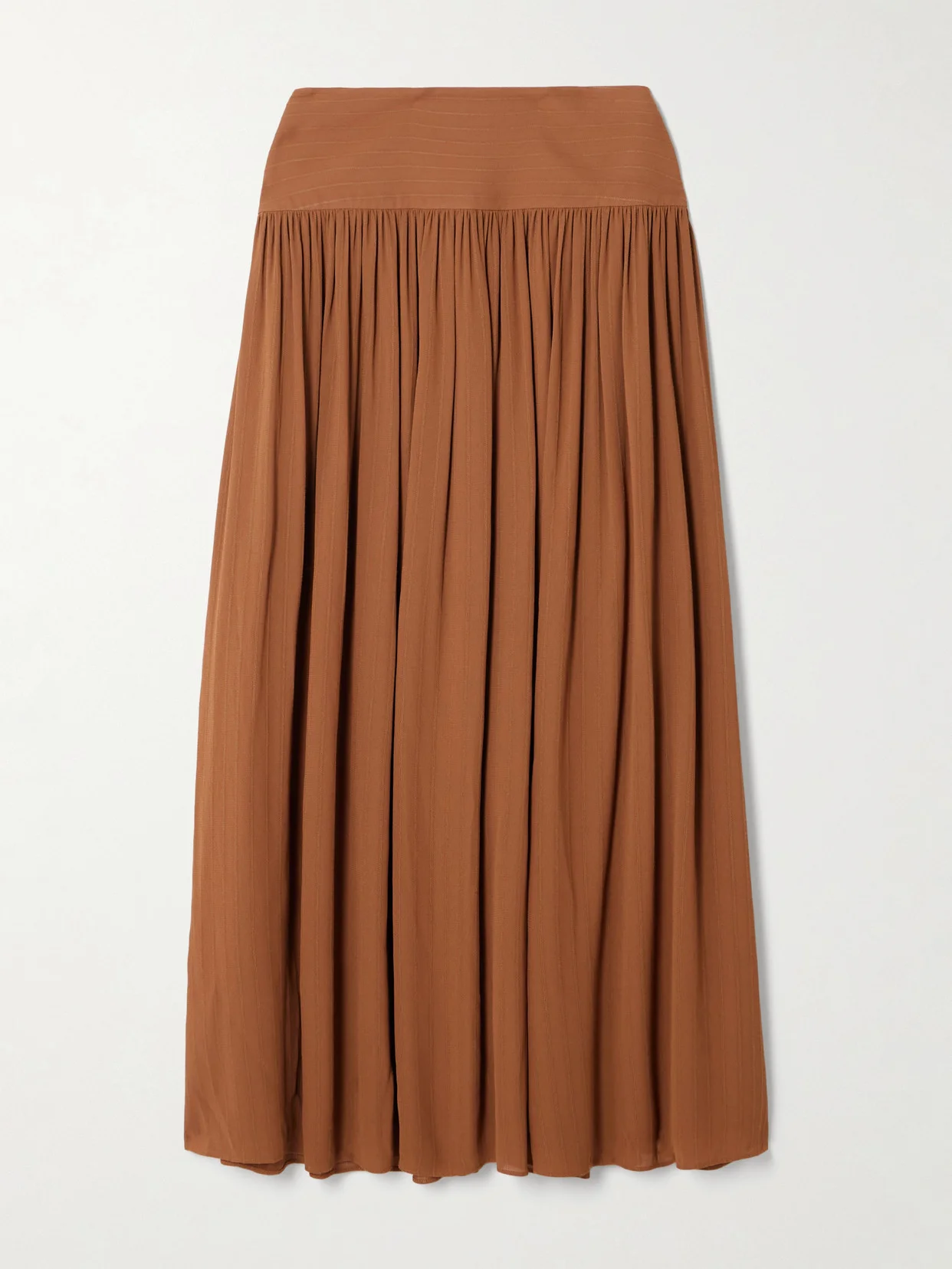 Santos Pinstriped Gathered Crepe Midi Skirt