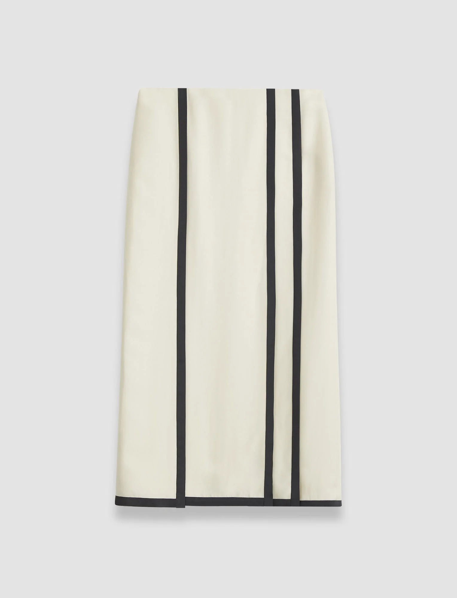 The Heavy Silk Crepe Animation Iris Skirt is a straight fit skirt, crafted from a rich silk and viscose blend. This skirt is made up of overlapping panels, which creates modest slits at the side and back. It features a contrasting colour frame around each panel creating a graphic effect. - Designed for a straight fit - Mid-rise - Overlapping panels - A-symmetric slits - Invisible side zip - Secure underlayer - Delicate fabric, handle with care - Product code: jf0086781964 SIZE ADVICE - Length 84cm - 87cm - Model wears French size 36 CARE & MATERIALS Discover the Care Guide, a guide to help you to care for your garments. - 66% Silk 34% Viscose - Do not wash - Do not bleach - Do not tumble dry - Iron low temperature setting - Dry clean very light with restriction