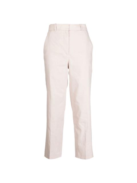 high waist cropped trousers light pink linen/flax blend concealed front fastening belt loops two side inset pockets two rear welt pockets pressed crease cropped leg Imported Composition Body: Linen/Flax 66%, Cotton 32%, Elastane 2% SIZE & FIT Model measurements Height 5 ft 11 in(1.8 m) Bust/Chest 28.34 in(72 cm) Hips 35.43 in(90 cm) Waist 23.62 in(60 cm) Measurement FRONT RISE 12.2 in(31 cm) WAIST 30.7 in(78 cm) HIPS 36.22 in(92 cm) FittingInformation This piece fits true to size. We recommend you get your regular size Designed to be fitted at the waist and hips, loose over the leg Made with a mid-weight stretch fabric