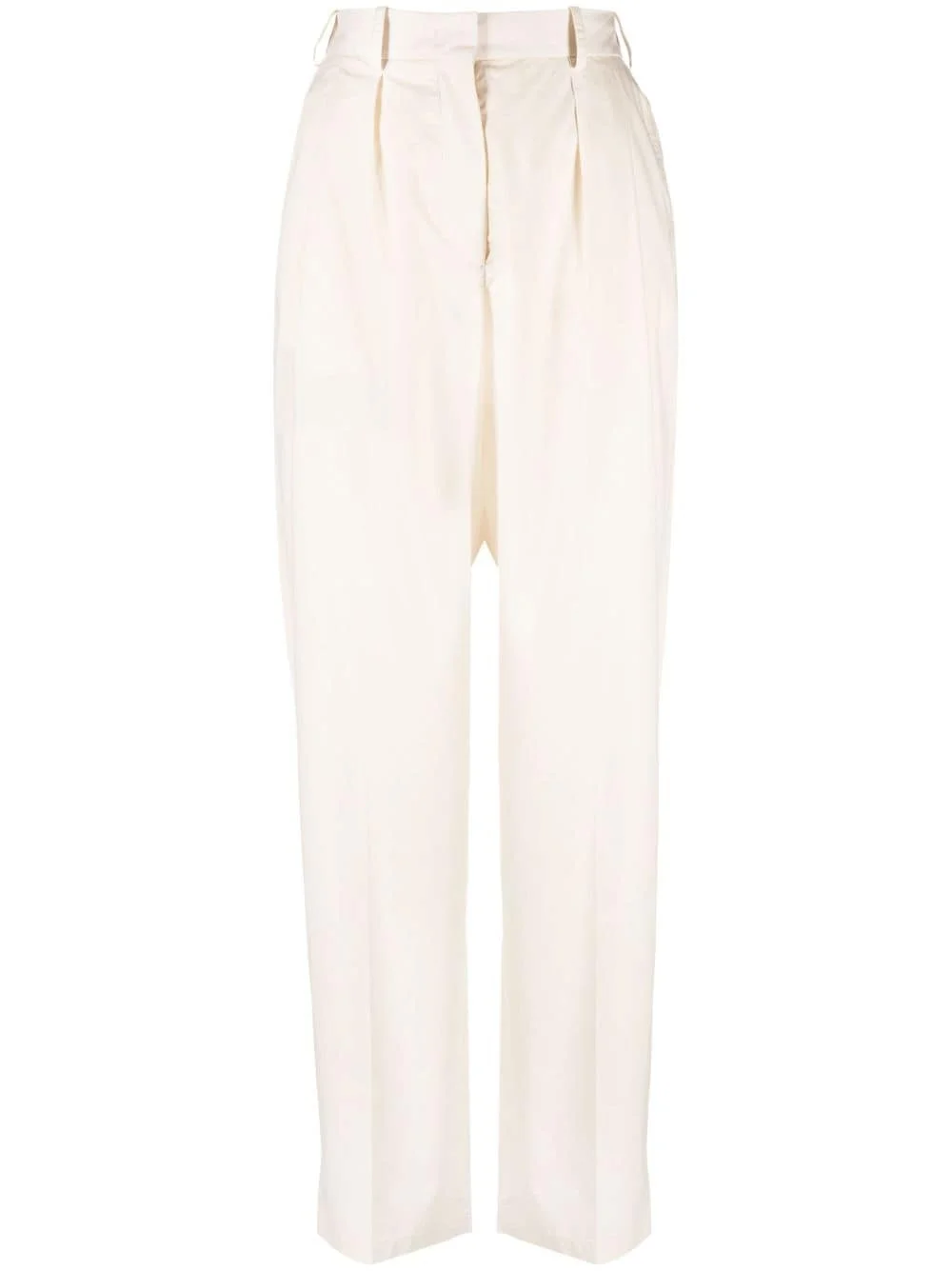 high-waisted cotton trousers ivory white cotton high-waisted belt loops concealed front fastening two rear welt pockets tapered leg Imported Composition Outer: Cotton 100% Lining: Cotton 100% SIZE & FIT Model measurements Height 5 ft 9 in(1.76 m) Bust/Chest 33.07 in(84 cm) Hips 38.58 in(98 cm) Waist 24.8 in(63 cm) FittingInformation Designed for a relaxed tapered cut, these trousers allow for a close fit at the waist and offer a loose fit at the thighs, with a closer fit toward the ankles Made from a midweight non-stretch fabric This piece fits true to size – take your usual size