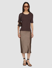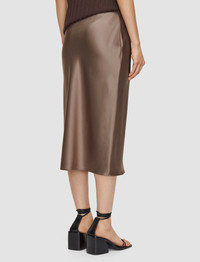 The Silk Satin Isaak Skirt is a slim fit slip skirt, crafted from a luxurious, lustrous silk which is ultra smooth and rich in colour. It has a slim elasticated waistband and offers a clean, sleek look. - 100% silk - Slim fit around waist, hips and thighs - Mid-rise - Mid-length - Elasticated waistband - Product code: jf0090881251 - Escargot Grey SIZE ADVICE - Model wears size FR 36/UK 8/EU 34/US 4/DE 34/IT 40/JP 7 CARE & MATERIALS Discover the Care Guide, a guide to help you to care for your garments. - 100% Silk - Machine wash, delicate program wash, very gentle spin - Do not bleach - Do not tumble dry - Iron low temperature setting - Dry clean - Use a mild detergent - Hang to dry - Wash inside out with similar colours - Iron inside out
