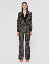 The Jaden Patchwork Lace Jacket is a regular fit, double-breasted jacket, crafted from a silk blend. Precious, modern-look lace is reimagined in a deconstructed patchwork pattern. The lace is designed by JOSEPH and developed alongside a specialist Italian mill. This eveningwear jacket is fluid and finished with shoulder padding. - Designed for a regular fit - Double-breasted - Side pockets - Lined - Product code: jp0016941104 - Comet Combo Black SIZE ADVICE - Model wears size FR 36/UK 8/EU 34/US 4/DE 34/IT 40/JP 7 CARE & MATERIALS - 88% Acetate 12% Silk - Do not wash - Do not bleach - Do not tumble dry - Iron low temperature setting - Dry clean