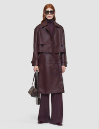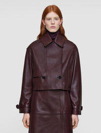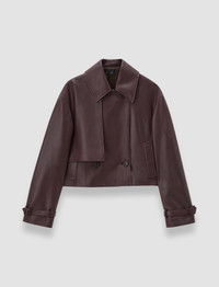 The Blaise Nappa Leather Jacker is a relaxed fit, cropped jacket, crafted from supple nappa leather for exceptional comfort and softness. Featuring versatile lapels, a storm flap, and adjustable buckled cuff straps, this ultra-cool style is defined by its classic trench coat finishes. Model wears size FR 38/UK 10/EU 36/US 6/DE 36/IT 42/JP 9 Details - Designed for a relaxed fit - Double-breasted - Dropped shoulders - Storm flap - Buckle cuff straps - Lined - Product code: jf0094811602 Care & Materials - 100% Lambskin - Do not wash - Do not bleach - Do not iron - Do not tumble - Do not dry clean - Cleaning by a leather specialist only
