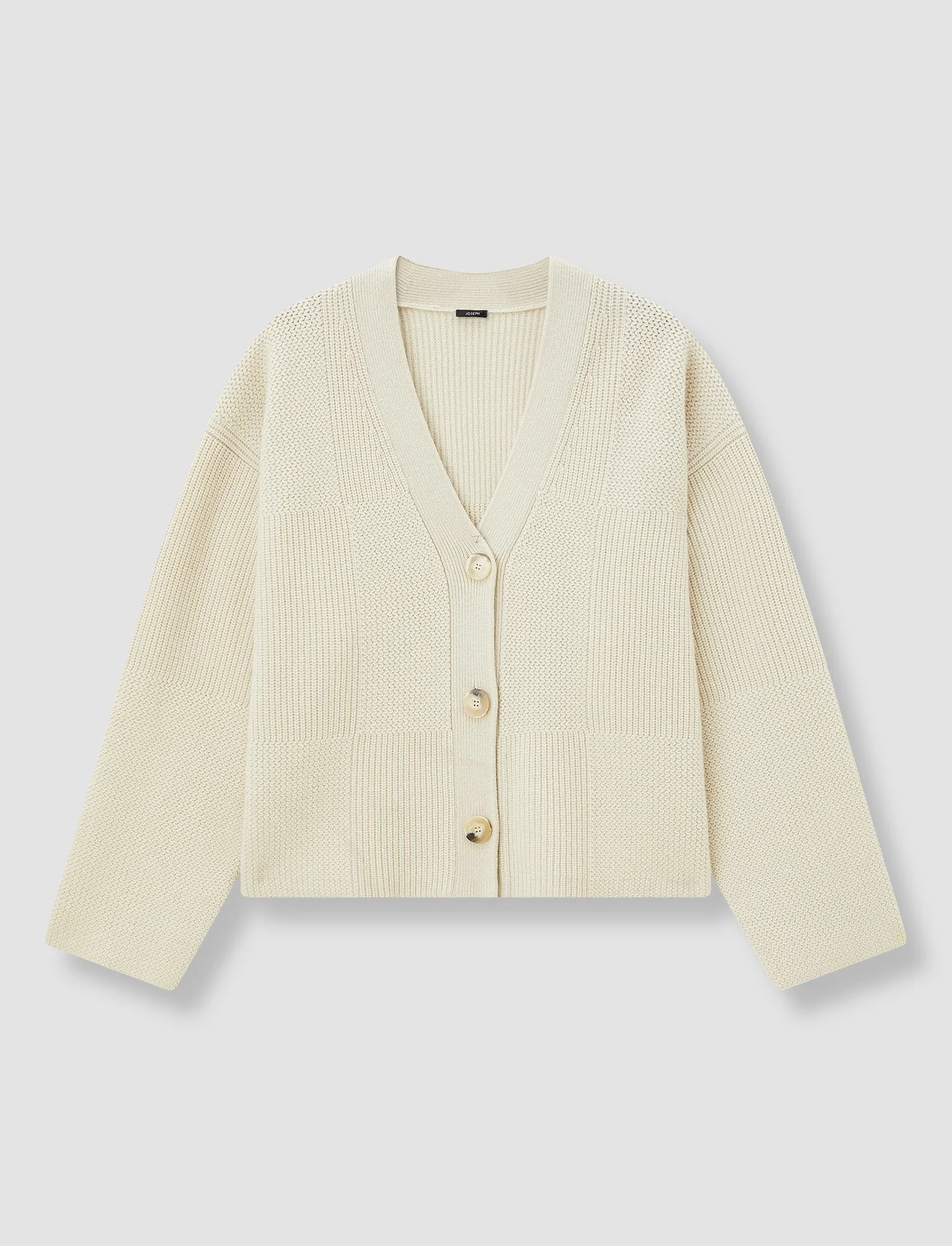 The Soft Wool Cardigan is a relaxed fit cardigan, crafted from a pure merino wool which has an soft hand feel. This plush, cosy style features a knitted multi-directional square pattern. Model wears size M Details - 100% merino wool - Designed for a relaxed fit - Dropped shoulders - Product code: jf0092922270 Care & Materials - 100% Merino Wool - Machine wash, hand wash cycle, wool/silk program, very gentle spin - Do not bleach - Do not tumble dry - Iron low temperature setting - Dry clean - Use a wool shampoo - Put in a laundry bag - Wash inside out with similar colours - Dry flat - Iron inside out