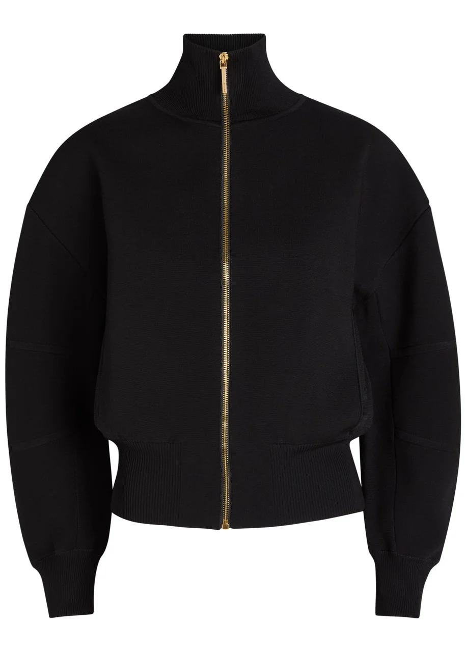 Info & Care Joseph Milano knit bomber jacket High-neck, dropped shoulders, balloon sleeves, side slip pockets, ribbed trims Zip fastening through front 60% viscose, 19% polyamide, 18% polyester, 3% elastane Dry clean Size & Fit Length shoulder to hem: 22 inches/ 56.5cm Midweight Relaxed style, slim across the hips Model is 5'10"/ 178cm and wears a size small