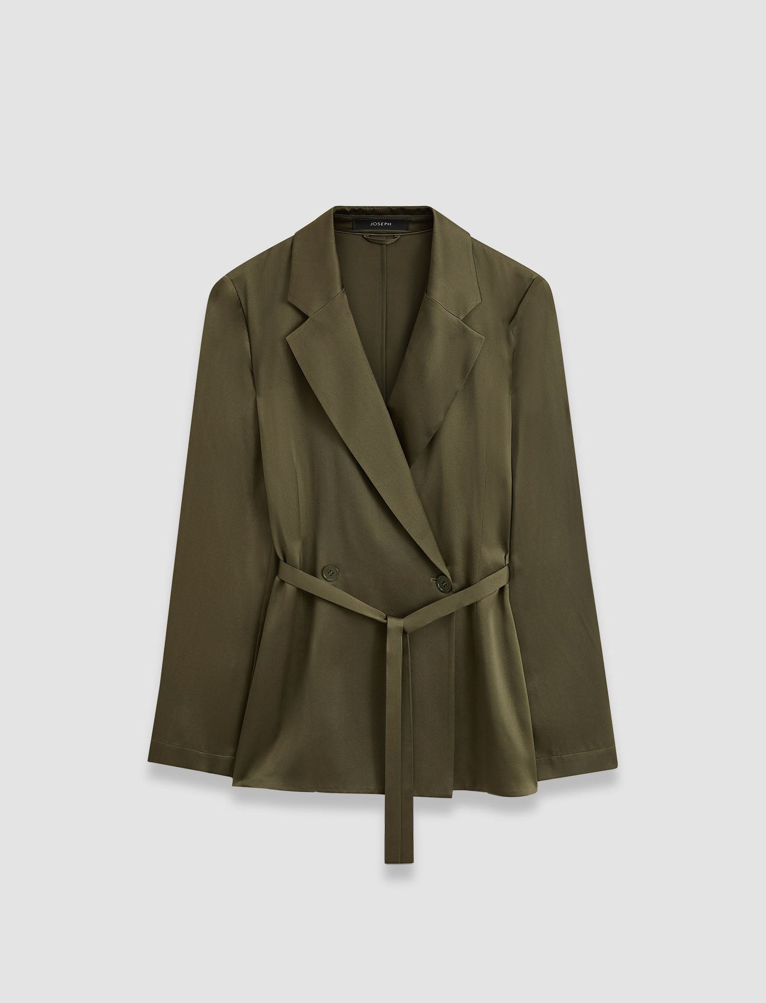 The Silk Satin Joubert Jacket is a regular fit, double-breasted jacket, crafted from a lustrous silk. This elegant jacket is lightweight and fluid, it can be worn alone or as a light layer. It's rich in colour and has a smooth hand feel. - 100% silk - Designed for a regular fit - Double-breasted - Two button closure - Removeable belt - Lightweight - Product code: jf0086861203 SIZE ADVICE - Model wears French size 36 CARE & MATERIALS Discover the Care Guide, a guide to help you to care for your garments. - 100% Silk - Do not wash - Do not bleach - Do not tumble dry - Iron low temperature setting - Dry clean very light with restriction