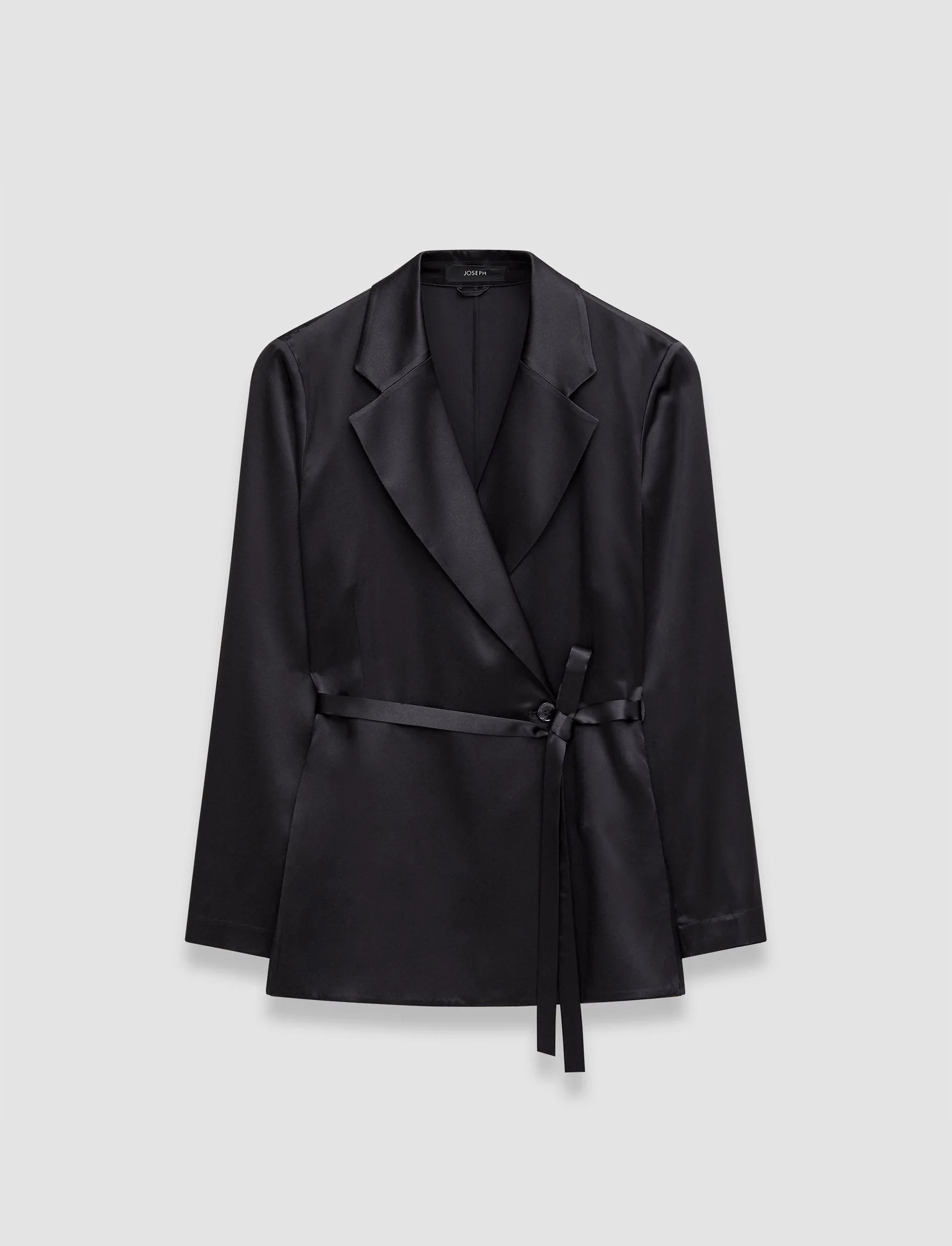 The Joubert Silk Satin Jacket is a regular fit, double-breasted jacket. Crafted from a luxurious, lustrous silk which is ultra smooth and rich in colour. This elegant jacket is lightweight; it can be worn on its own or as a layering piece. Model wears size FR 36/UK 8/EU 34/US 4/DE 34/IT 40/JP 7 Details - 100% silk - Designed for a regular fit - Double-breasted - Two button closure - Removeable tie belt - Lightweight - Product code: jf0093780010 Care & Materials - 100% Silk - Do not wash - Do not bleach - Do not tumble dry - Iron low temperature setting - Dry clean