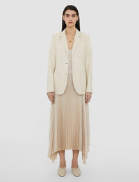 The Knit Weave Plissé Ade Skirt is an A-line midi skirt crafted from a crepe yarn which is smooth and silky. This beautiful, high-waisted style features an elasticated waist band and an asymmetric hem. Modern, chic and perfect for day-to-night wear, the pleats allow this fluid piece to keep its shape and structure over time. Also available in shorter length - High-waisted - A-line - Elasticated waist - Regular length 80 - 83cm - Shorter length 72 - 75cm - Model wears French size 36, S - Product code: jf0064841272 SIZE ADVICE - High-waisted - A-line - Elasticated waist - Regular length 80 - 83cm - Shorter length 72 - 75cm - Model wears French size 36, S CARE & MATERIALS - 100% Polyester - Do not wash - Do not bleach - Do not tumble dry - Iron low temperature setting - Delicate dry clean