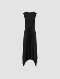 The Knit Weave Plissé Dera Dress is an A-line midi dress crafted from a crepe yarn which has a silky and compact hand feel. This style features a slim fit, knitted top half, which is attached to a fluid, sunray pleated skirt. - Slim fit to flare - Mid-length - Asymmetric hem - Regular length 111 - 117cm - Shorter length 103 - 108cm - Model wears French size 36, S - Product code: jf0080230010 SIZE ADVICE - Slim fit to flare - Mid-length - Asymmetric hem - Regular length 111 - 117cm - Shorter length 103 - 108cm - Model wears French size 36, S CARE & MATERIALS - 100% Polyester - Do not wash - Do not bleach - Do not tumble dry - Iron low temperature setting - Dry clean mild - Specialist care required
