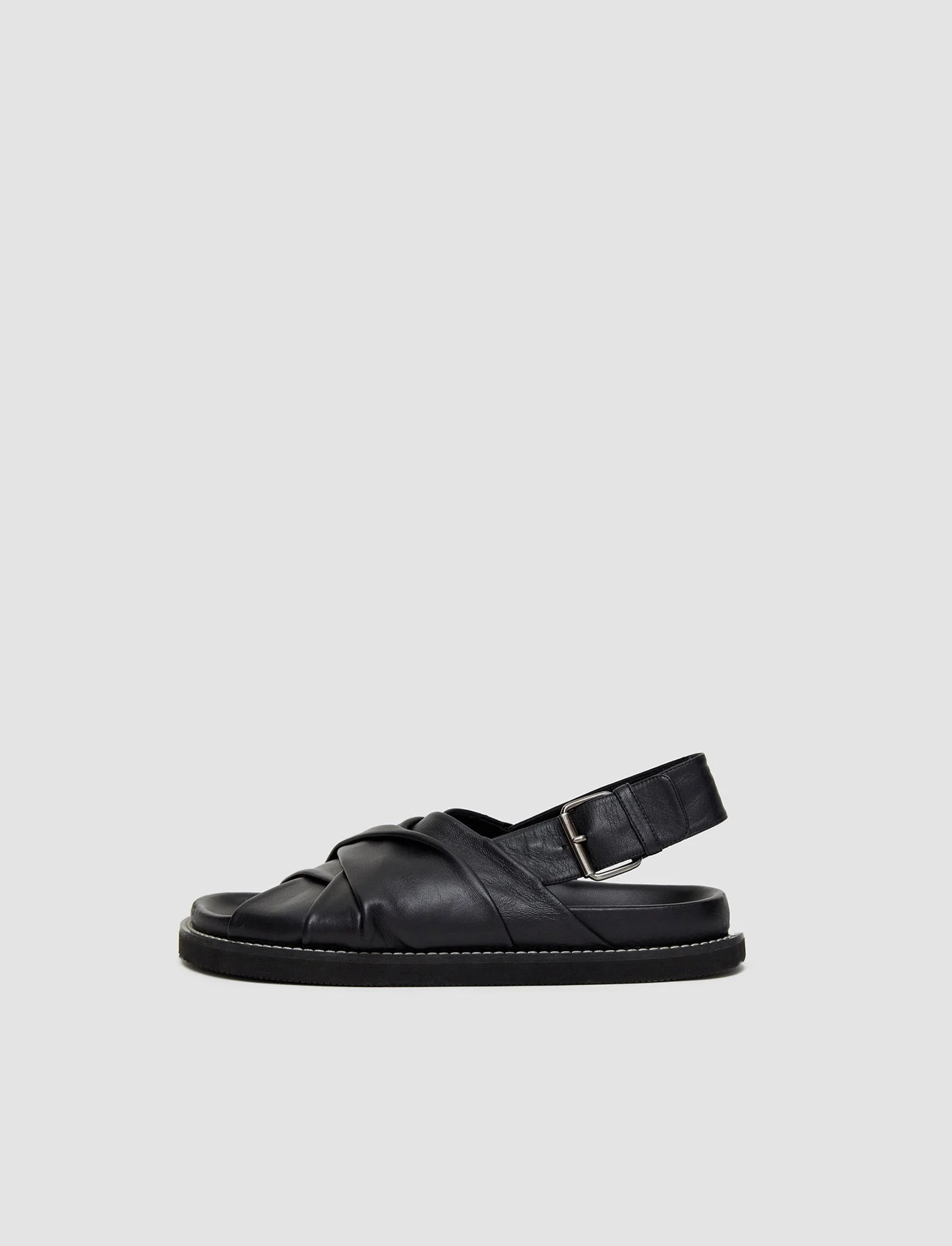 The Leather Jazzy Strap Sandals are a slip on, buckled sandal crafted from a soft, durable leather. Featuring a wide, overlapping design and a chunky sole for support and comfort. - 100% Leather - True to size - Product code: jf0074070010 SIZE ADVICE - 100% Leather - True to size CARE & MATERIALS Discover the Care Guide, a guide to help you to care for your garments. - 100% Leather - Specialist clean only