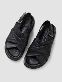The Leather Jazzy Strap Sandals are a slip on, buckled sandal crafted from a soft, durable leather. Featuring a wide, overlapping design and a chunky sole for support and comfort. - 100% Leather - True to size - Product code: jf0074070010 SIZE ADVICE - 100% Leather - True to size CARE & MATERIALS Discover the Care Guide, a guide to help you to care for your garments. ā- 100% Leather - Specialist clean only