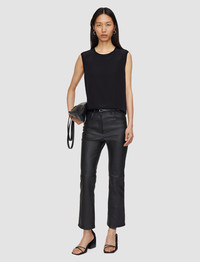 Part of the permanent Foundations Collection, the Leather Stretch Duke Trousers are a mid-rise, slim fit trouser, crafted from supple leather that offers stretch and comfort. These trousers are cropped in length with a subtle flare. - Designed for a slim fit - Mid-rise - Cropped length - Subtle flare - Classic five pockets - Product code: jf0084320010 SIZE ADVICE - Model wears French size 36 CARE & MATERIALS - 100% Leather - Dry clean leather & fur specialist only