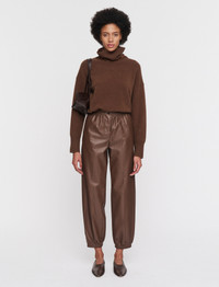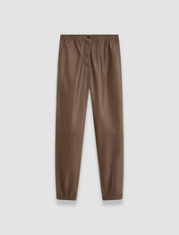The Nappa Leather Taio Trousers are a relaxed fit, mid-rise trouser, crafted from a lightweight, supple leather. They feature an elasticated waistband with a zip and button fasten, and elasticated cuffs. An elevated take on the jogger silhouette, offering a modern, off-duty look. - Designed for a relaxed fit - Mid-rise - Subtle volume - Side pockets - Elasticated waistband and cuffs - Product code: jf0087821210 SIZE ADVICE - Model wears French size 36 Discover the Trouser Guide and find your perfect fit. CARE & MATERIALS - 100% Viscose - Do not wash - Do not bleach - Do not tumble dry - Iron low temperature setting - Dry clean very light with restriction