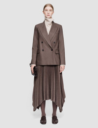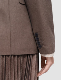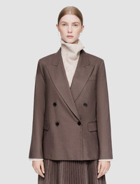The Light Wool Flannel Jaden Jacket is a relaxed fit, double-breasted jacket, crafted from a smooth virgin wool blend. This modern tailoring fabric offers lightness and comfort, and features a subtle brushed texture. It’s lined and finished with shoulder padding. - Designed for a regular fit - Double-breasted - Front flap pockets - Chest pocket outside and inside - Product code: jp0016821217 SIZE ADVICE - Model wears size FR 36/UK 8/EU 34/US 4/DE 34/IT 40/JP 7 CARE & MATERIALS Discover the Care Guide, a guide to help you to care for your garments. - 99% Virgin wool 1% Elastane - Do not wash - Do not bleach - Do not tumble dry - Iron low temperature setting - Dry clean