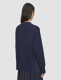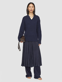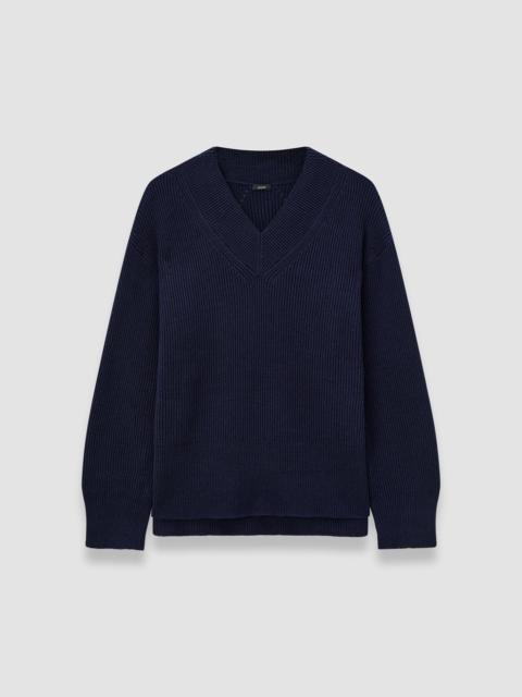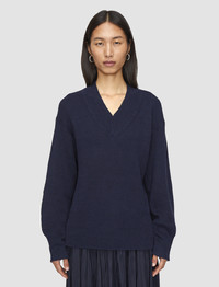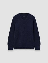 The Linen Blend Knit V Neck Jumper is a relaxed fit style, crafted from an Italian linen cotton blend. This seasonal knit is finished in JOSEPH's signature cardigan stitch. It offers a crisp-cotton hand feel, ideal for warmer days. - Designed for a relaxed fit - Dropped shoulders - Side slits - Wide ribbed neckline, cuffs and hem - Product code: jf0090340370 - Navy SIZE ADVICE - Model wears size L CARE & MATERIALS - 69% Linen 26% Cotton 4% Polyamide 1% Elastane - Machine wash, wool/silk program wash, very gentle spin - Do not bleach - Do not tumble dry - Iron low temperature setting - Dry clean normal - Use a wool shampoo - Put in a laundry bag - Wash inside out with similar colours - Dry flat - Iron inside out