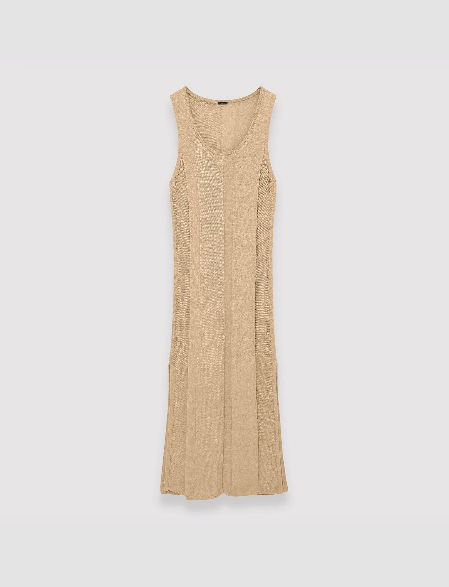 The Linen Blend Knitted Long Dress is a regular fit, straight cut dress, crafted from a blend of linen and silk. This full-length style is comprised in a mix of knitted gauges, which creates the striped texture. Finished with side slits at the hem, offering a relaxed, fluid look. - Designed for a regular fit - Straight cut - Full length - Side slits - Product code: jf0085191232 SIZE ADVICE - Length 119cm - 124cm - Model wears size S CARE & MATERIALS Discover the Care Guide, a guide to help you to care for your garments. - 71% Linen, 24% Silk, 4% Polyamide, 1% Elastane - Machine wash, wool/silk program wash, very gentle spin - Do not bleach - Do not tumble dry - Iron low temperature setting - Dry clean normal - Use a wool shampoo - Put in a laundry bag - Wash inside out with similar colours - Dry flat - Iron inside out