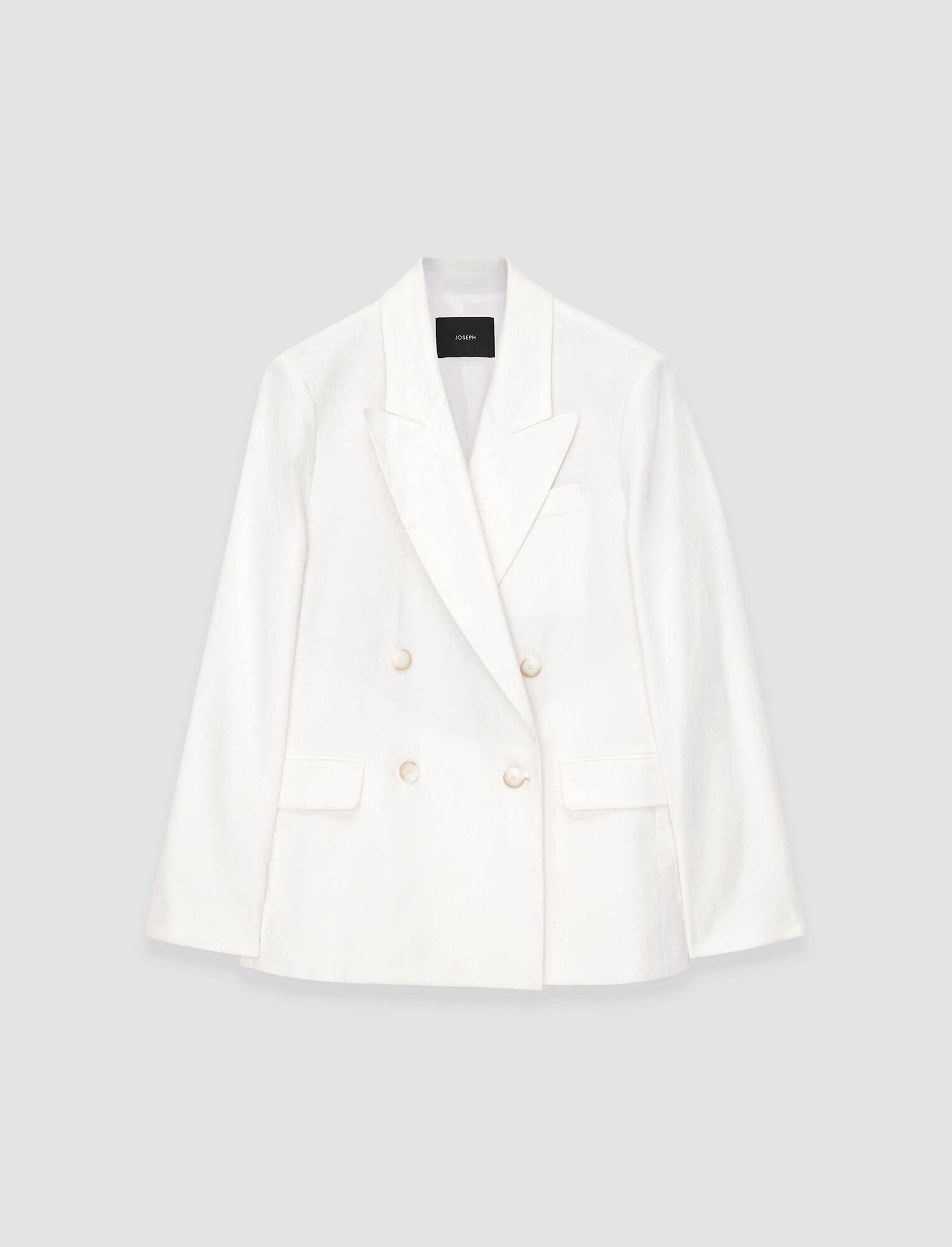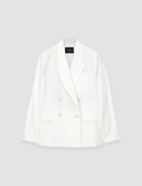 The Linen Cotton Jaden Jacket is a regular fit, double-breasted jacket, crafted from linen and organic cotton. This seaonal, tailored piece is lined with an inside chest pocket and finished with shoulder padding. - Designed for a regular fit - Double-breasted - Front flap pockets - Chest pocket outside and inside - Product code: jp0015980045 SIZE ADVICE - Model wears French size 36 CARE & MATERIALS - 66% Linen 32% Cotton 2% Elastane - Do not wash - Do not bleach - Do not tumble dry - Iron low temperature setting - Dry clean mild