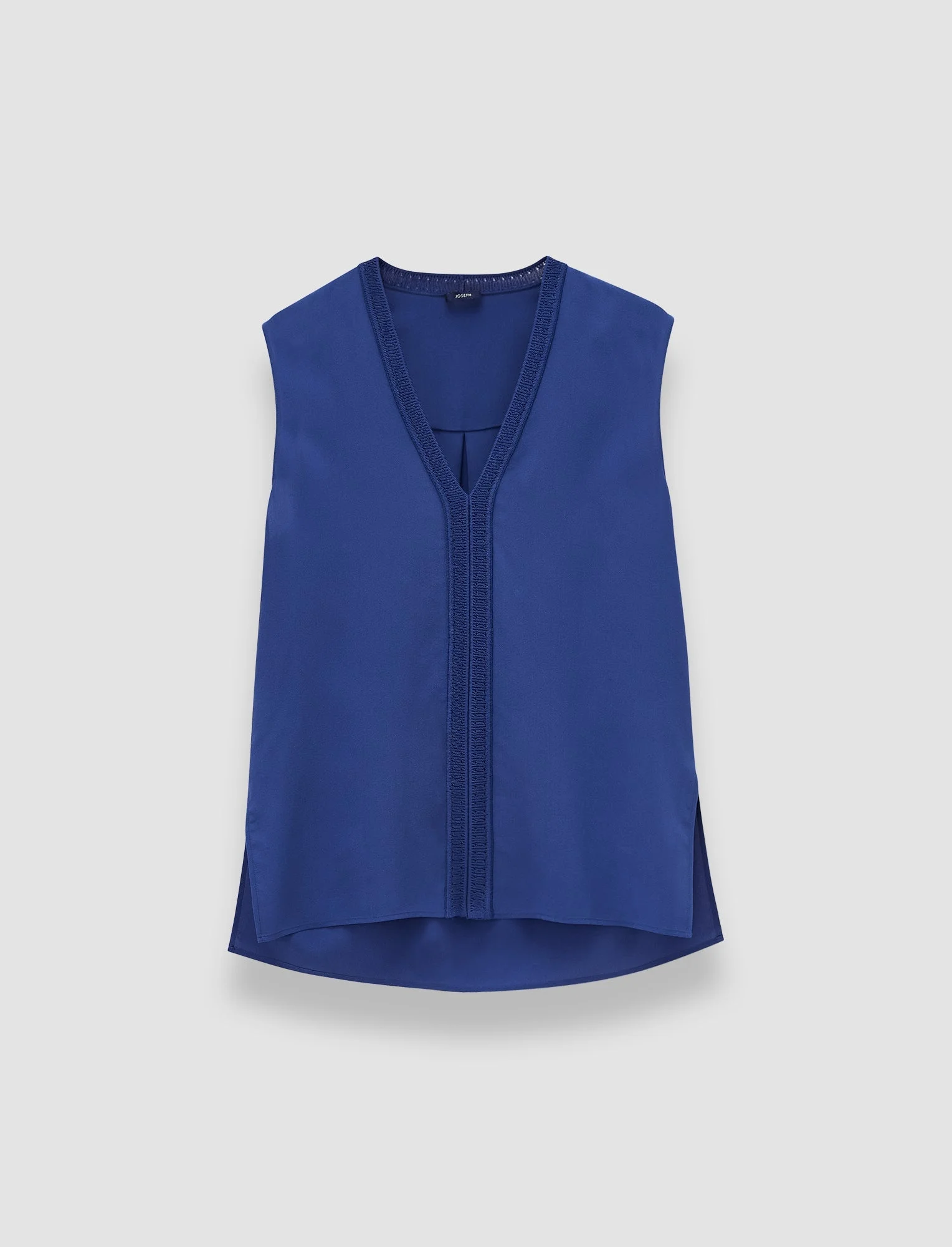 The Louis Crepe de Soie Silk Blouse is a relaxed fit, sleeveless top, crafted from a lightweight silk crepe. This elegant, easy-wearing style features a knitted detail that frames the neckline and continues down the front of the blouse. Model wears size FR 36/UK 8/EU 34/US 4/DE 34/IT 40/JP 7 Details - 100% silk - Designed for a relaxed fit - Back pleat - Knitted detail - Product code: jf0093901410 Care & Materials - 100% Silk - Do not wash - Do not bleach - Do not tumble dry - Iron low temperature setting - Dry clean