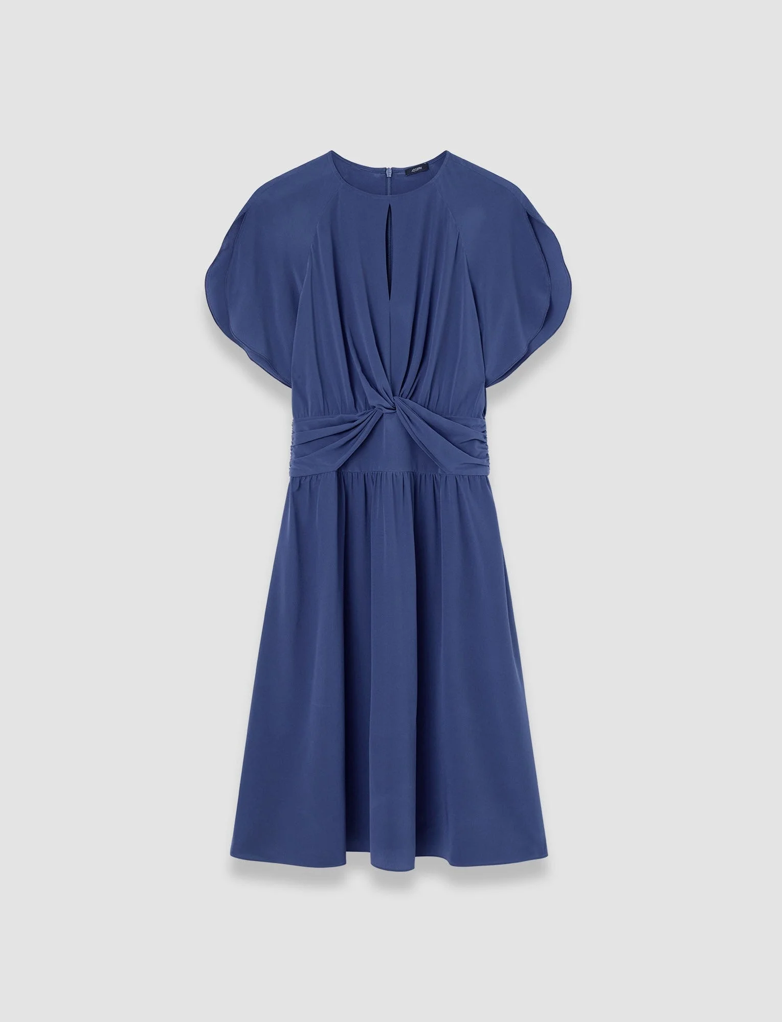 The Lowri Crepe de Soie Knot Silk Dress is a flared dress, crafted from JOSEPH’s signature luxurious silk crepe. This romantic style dress features a knotted centre which accentuates the waist. Its lightness allows for volume, drape and exceptional comfort. - 100% silk - Flared - Knee length - Tulip sleeves - Keyhole neckline - Knotted waist detail - Product code: jf0092211403 - Harbour Blue SIZE ADVICE - Model wears size FR 36/UK 8/EU 34/US 4/DE 34/IT 40/JP 7 CARE & MATERIALS - 100% Silk - Do not wash - Do not bleach - Do not tumble dry - Iron low temperature setting - Dry clean