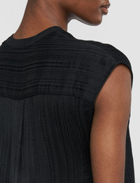 The Lucien Pleat Jacquard Blouse is a relaxed fit, sleeveless top. Crafted from a blend of viscose and silk, this style is lightweight and airy. It features a pronounced linear texture. Model wears size FR 36/UK 8/EU 34/US 4/DE 34/IT 40/JP 7 Details - Designed for a relaxed fit - V neck - Step hemline - Semi sheer - Linear texture - Product code: jf0091820010 Care & Materials - 69% Viscose, 31% Silk - Do not wash - Do not bleach - Do not tumble dry - Iron low temperature setting - Dry clean