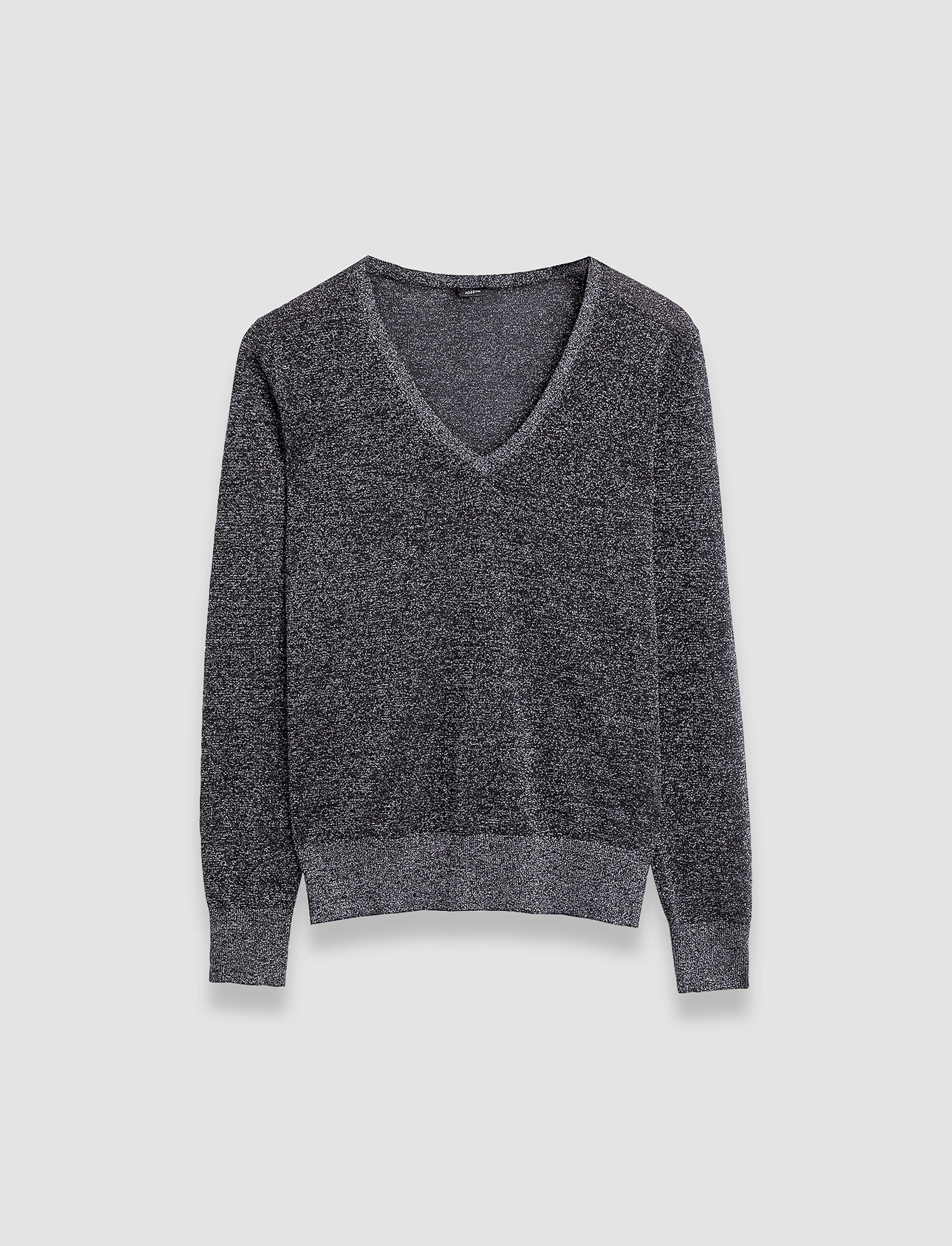 The Lurex Knit V Neck Jumper is a regular fit jumper, crafted from a blend of viscose and metallic fibre. This festive piece is lightweight with a slight sheerness. It's finished with a ribbed neckline, hem and cuffs. - Designed for a regular fit - Shimmery finish - Semi sheer - Lightweight - Product code: jf0088460572 - Aurora Purple SIZE ADVICE - Model wears size S CARE & MATERIALS - 67% Viscose 14% Metal fibre 14% Polyester 4% Polyamide 1% Elastane - Machine wash, wool/silk program wash, very gentle spin - Do not bleach - Do not tumble dry - Iron low temperature setting - Do not dry clean - Use a mild detergent - Put in a laundry bag - Wash inside out with similar colours - Dry flat - Iron on reverse