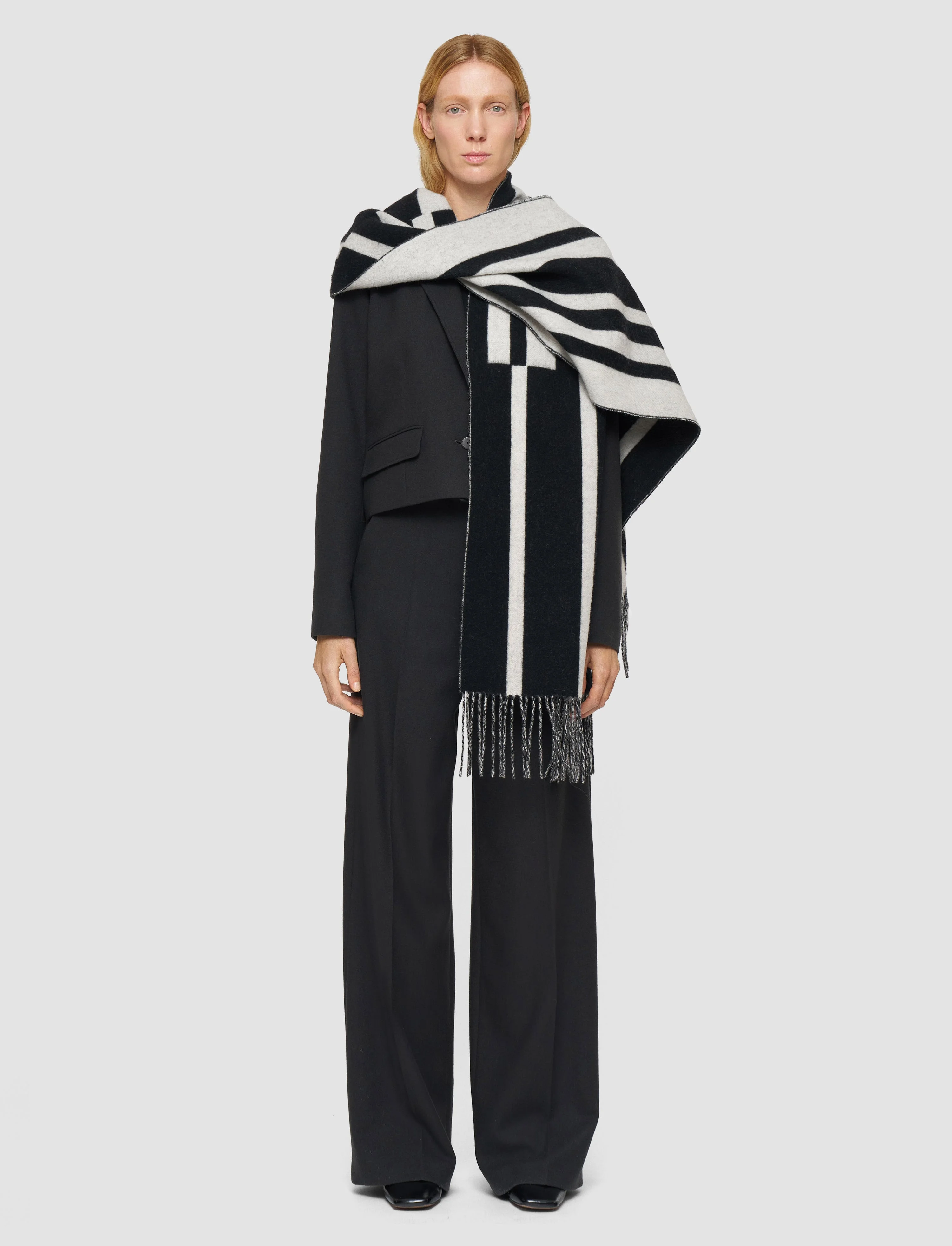 The Magali Wool Scarf is a large scarf, crafted from wool. This cosy accessory features the signature JOSEPH stripe pattern and fringed edges. Details - 100% wool - 230cm x 40cm - Product code: jf0093440265 Care & Materials - 100% Wool - Do not wash - Do not bleach - Do not tumble dry - Iron low temperature setting - Dry clean