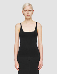 The Milano Knit Stretch Vest Top is a slim fit top, crafted from a stretchy viscose blend. This piece is knitted together in a compact Milano stitch, delivering a clean, fitted look. It's ideal for everyday layering or underpinning a suit. - Designed for a slim fit - Square neckline - To ensure this item keeps its shape please fold and avoid hanging - Product code: jf0090130010 - Black SIZE ADVICE - Model wears size S CARE & MATERIALS - 73% Viscose 24% Polyamide 3% Elastane - Do not wash - Do not bleach - Do not tumble dry - Iron low temperature setting - Dry clean
